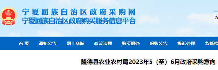 隆德縣農(nóng)業(yè)農(nóng)村局2023年5(至)6月政府采購意向