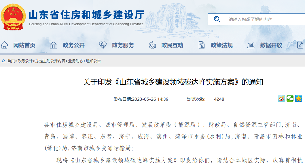 近日,山東省住房和城鄉建設廳、山東省發展和改革委員會、山東省財政廳、山東省自然資源廳、山東省能源局關于印發《山東省城鄉建設領域碳達峰實施方案》的通知指出,推動農房用能結構調整。推進太陽能、地熱能、空氣熱能、生物質能等可再生能源在鄉村生活熱水、供氣、供暖、供電等方面的應用。推進農房光伏屋頂行動,實現光伏發電自產自用、余電上網。因地制宜在新建農房中采取清潔供暖方式,鼓勵農作物秸稈、樹枝等生物質清潔高效綜合利用,推廣生物質成型燃料爐具、生物質鍋爐、太陽能等可再生能源供暖,到2025年力爭9個非通道城市農村地區清潔取暖率達到80%以上。推動鄉村進一步提高電氣化水平,鼓勵炊事、供暖、照明、交通、熱水等用能電氣化。