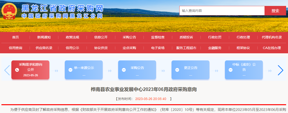 樺南縣農業事業發展中心2023年06月政府采購意向