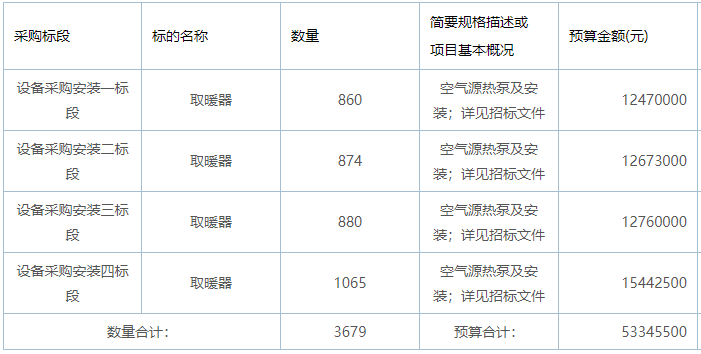 采購需求:3679戶空氣源熱泵及安裝;詳見招標文件