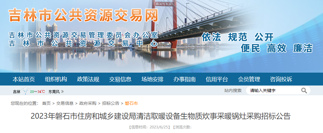 吉林省吉林市磐石市住房和城鄉(xiāng)建設(shè)局2023年清潔取暖設(shè)備生物質(zhì)炊事采暖鍋灶21395個采購招標(biāo)項目的潛在投標(biāo)人應(yīng)在磐石市公共資源交易中心網(wǎng)站獲取招標(biāo)文件,并于2023年7月18日9時30分(北京時間)前遞交投標(biāo)文件。