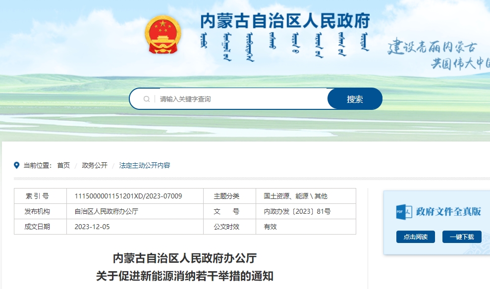 原標題:內蒙古自治區人民政府辦公廳關于促進新能源消納若干舉措的通知