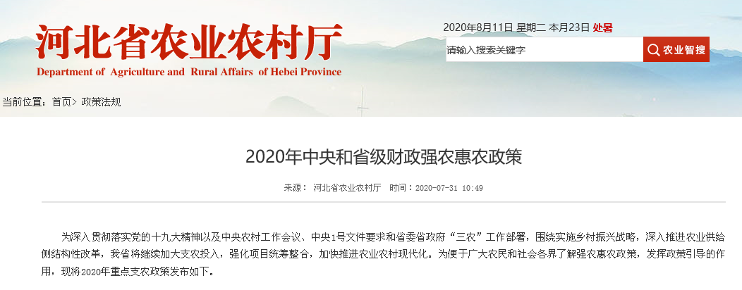 近日,河北省農業農村廳發布了2020年重點支農政策。其中,農村新能源開發利用。支持對象為畜禽糞污資源化和農作物秸稈能源化利用有關經營主體。支持生物質能源利用示范。形成以生物質能源為基礎,技術先進、經濟適用,可復制可推廣模式,解決農民生活和農業生產中清潔取暖、用能效率低、污染排放高的突出問題,促進用能結構的優化和提升,每縣補助200-500萬元,統籌用于補貼農戶購置、安裝、維護清潔能源供應設備,支持生物質氣化、生物質打捆直燃及生物質燃料企業擴大產能,強化生物質收儲運體系能力等。