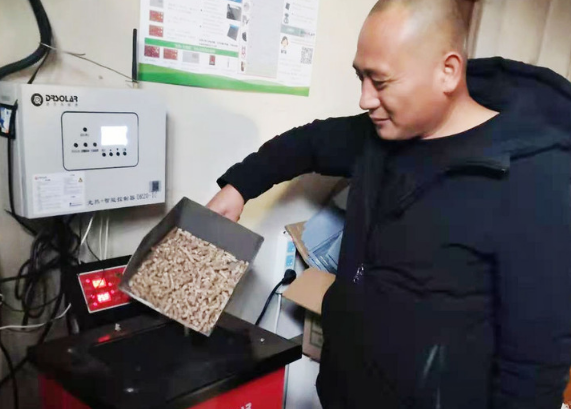 “太陽能光熱+生物質”農村清潔取暖項目是一種新型取暖方式,整套設備由太陽能集熱管和全自動化生物質暖爐組成。當晴天陽光強烈時,太陽能蓄熱水箱溫度可超過45攝氏度,屋內采用太陽能熱量取暖;當陰天或夜晚,太陽能蓄熱水箱內熱量不足時,生物質采暖爐可以自動開啟,點火加熱。除智能加熱模式,用戶也可自行人工調控,根據供熱面積設定供熱出水溫度,調整鍋爐供熱檔位和火力大小,輕松實現冬季取暖、四季熱水、燒炕做飯等一系列功能。據村民介紹,采暖爐所用的生物質燃料由樹枝、秸稈等經粉碎、烘干、擠壓而成,占地面積小,易燃燒,無異味。村民還可以收集樹枝、雜木等材料,免費換取生物質燃料。