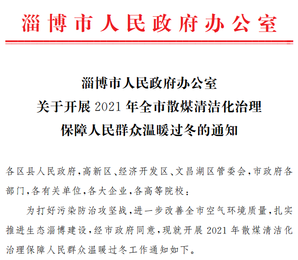 原標(biāo)題:淄博市印發(fā)《關(guān)于開(kāi)展2021年全市散煤清潔化治理保障人民群眾溫暖過(guò)冬的通知》