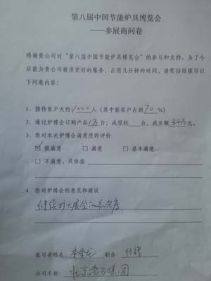 一年一度的中國節能爐具博覽會已然成為行業內各企業展示實力、提升品牌、拓展市場的重要平臺。在剛剛閉幕的第八屆爐博會上,北京老萬集團再次成為展會的大贏家之一,狂攬3千萬的銷售訂單,訂購出1萬臺產品。對這樣的展會效果,老萬在第八屆中國節能爐具博覽會參展商問卷上給出的評價是“很滿意”。