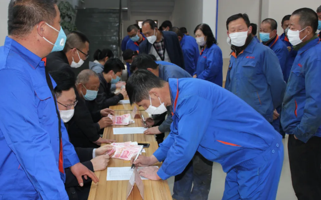 4月1日,老萬集團抗擊疫情“非常居家補貼”發放在山西生產基地舉行。