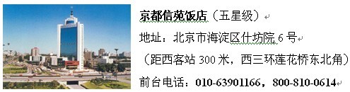 1. 會務組統一安排,京都信苑飯店(五星級),費用自理。