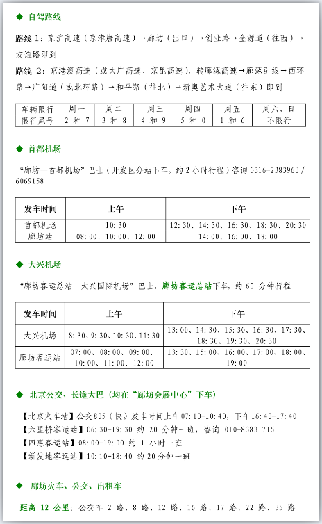 廊坊市區(qū)內(nèi)大貨車(chē)24小時(shí)限行,如參展的貨車(chē)進(jìn)入廊坊,請(qǐng)從G2高速廊坊出口出,并請(qǐng)?zhí)崆鞍衍?chē)牌號(hào)告知組委會(huì),便于協(xié)調(diào)。