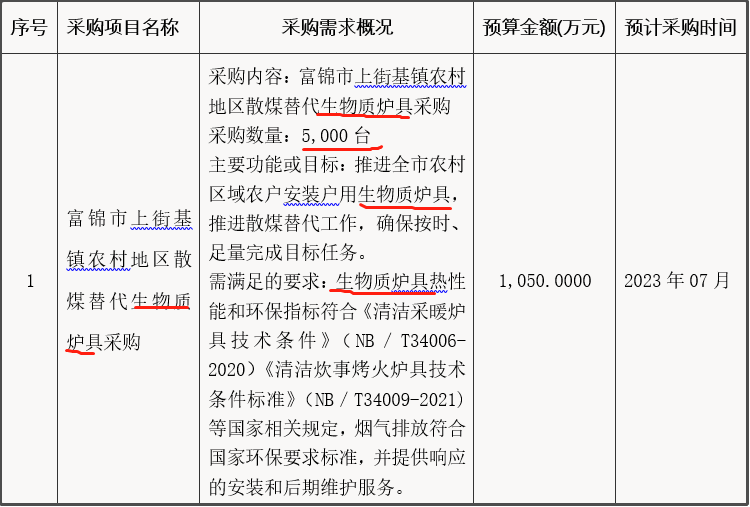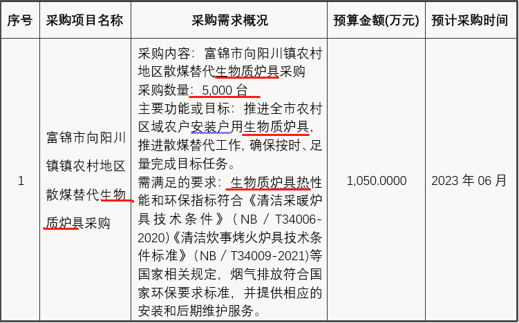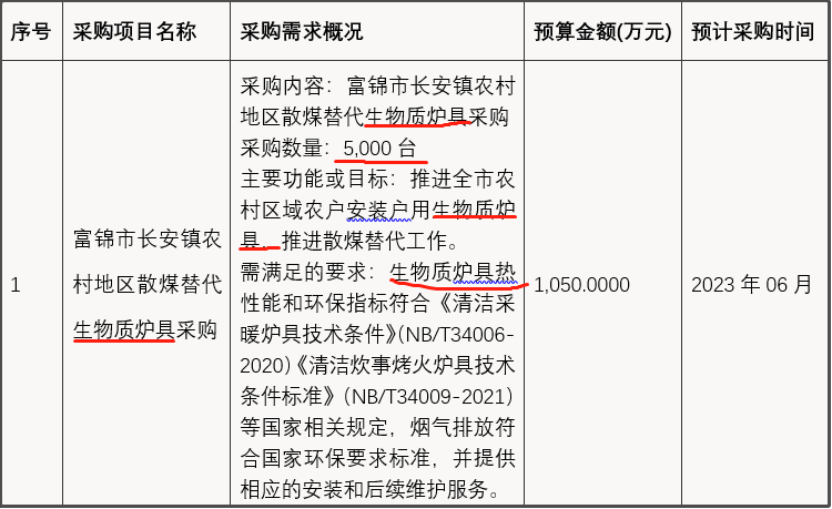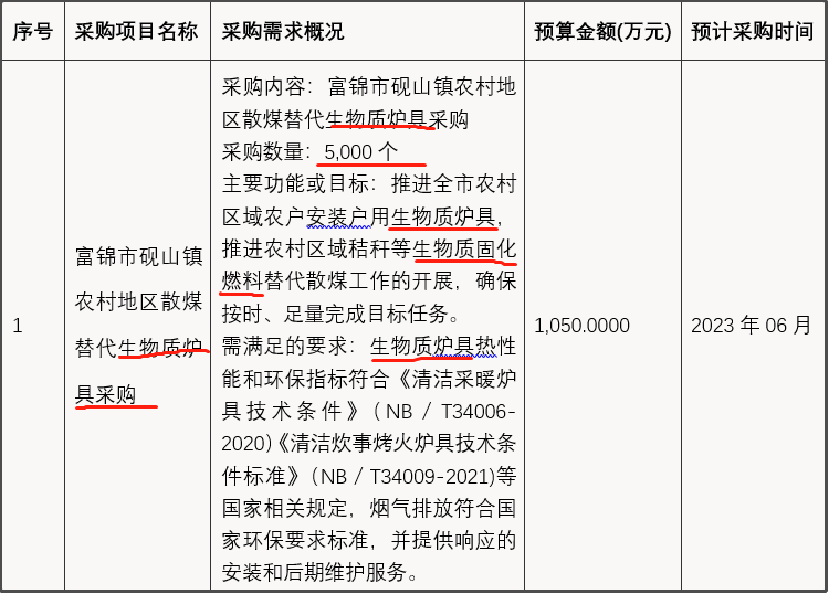 近日,從黑龍江省政府采購網獲悉,黑龍江省佳木斯市富錦市二龍山鎮、興隆崗鎮、硯山鎮、向陽川鎮、上街基鎮、頭林鎮、大榆樹鎮、長安鎮、富錦鎮、宏勝鎮等10個鎮46000臺清潔取暖散煤替代生物質爐具政府采購意向公開。其中,二龍山鎮5000臺、興隆崗鎮5000臺、硯山鎮5000臺、向陽川鎮5000臺、上街基鎮5000臺、頭林鎮5000臺、大榆樹鎮5000臺、長安鎮5000臺、富錦鎮1000臺、宏勝鎮5000臺。主要功能或目標:推進全市農村區域農戶安裝戶用生物質爐具,推進農村區域秸稈等生物質固化燃料替代散煤工作的開展,確保按時、足量完成目標任務。需滿足的要求:生物質爐具熱性能和環保指標符合《清潔采暖爐具技術條件》(NB/T34006-2020)《清潔炊事烤火爐具技術條件標準》(NB/T34009-2021)等國家相關規定,煙氣排放符合國家環保要求標準,并提供響應的安裝和后期維護服務。預計采購時間2023年6月、7月。