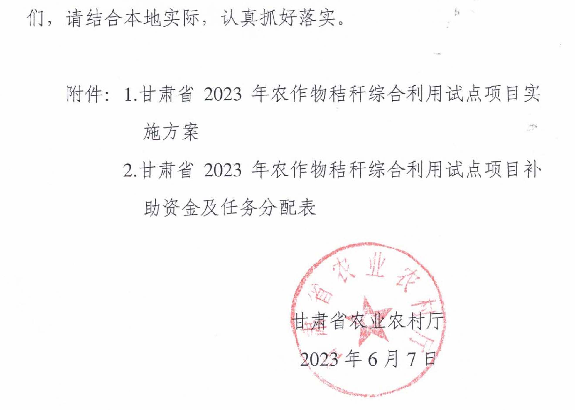 甘肅省2023年農作物秸稈綜合利用試點項目實施方案