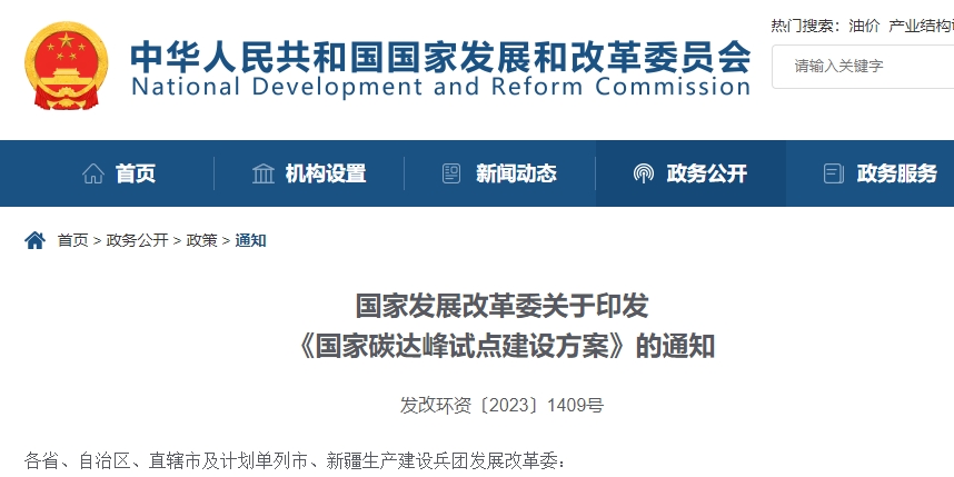 國家發展改革委關于印發《國家碳達峰試點建設方案》的通知