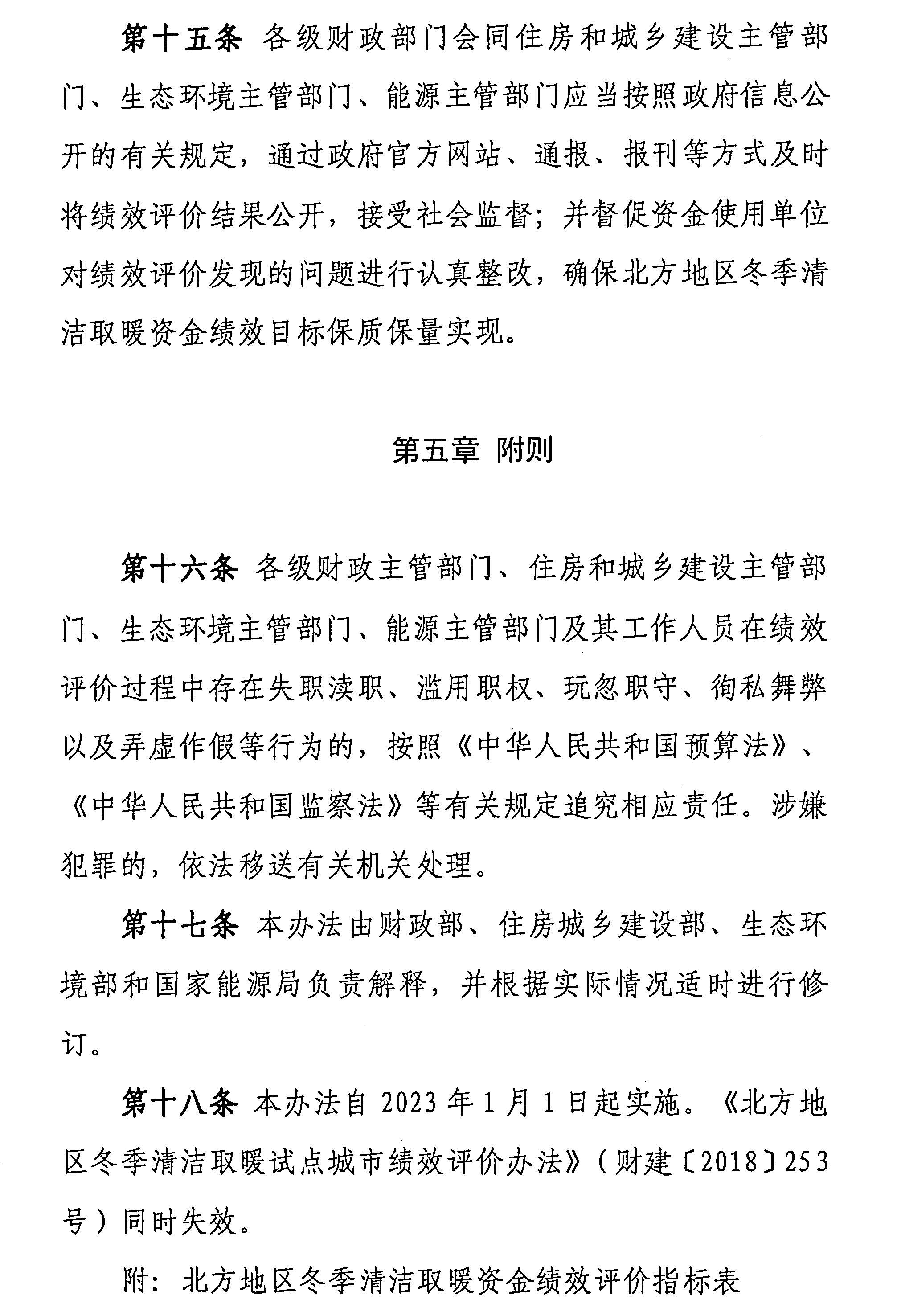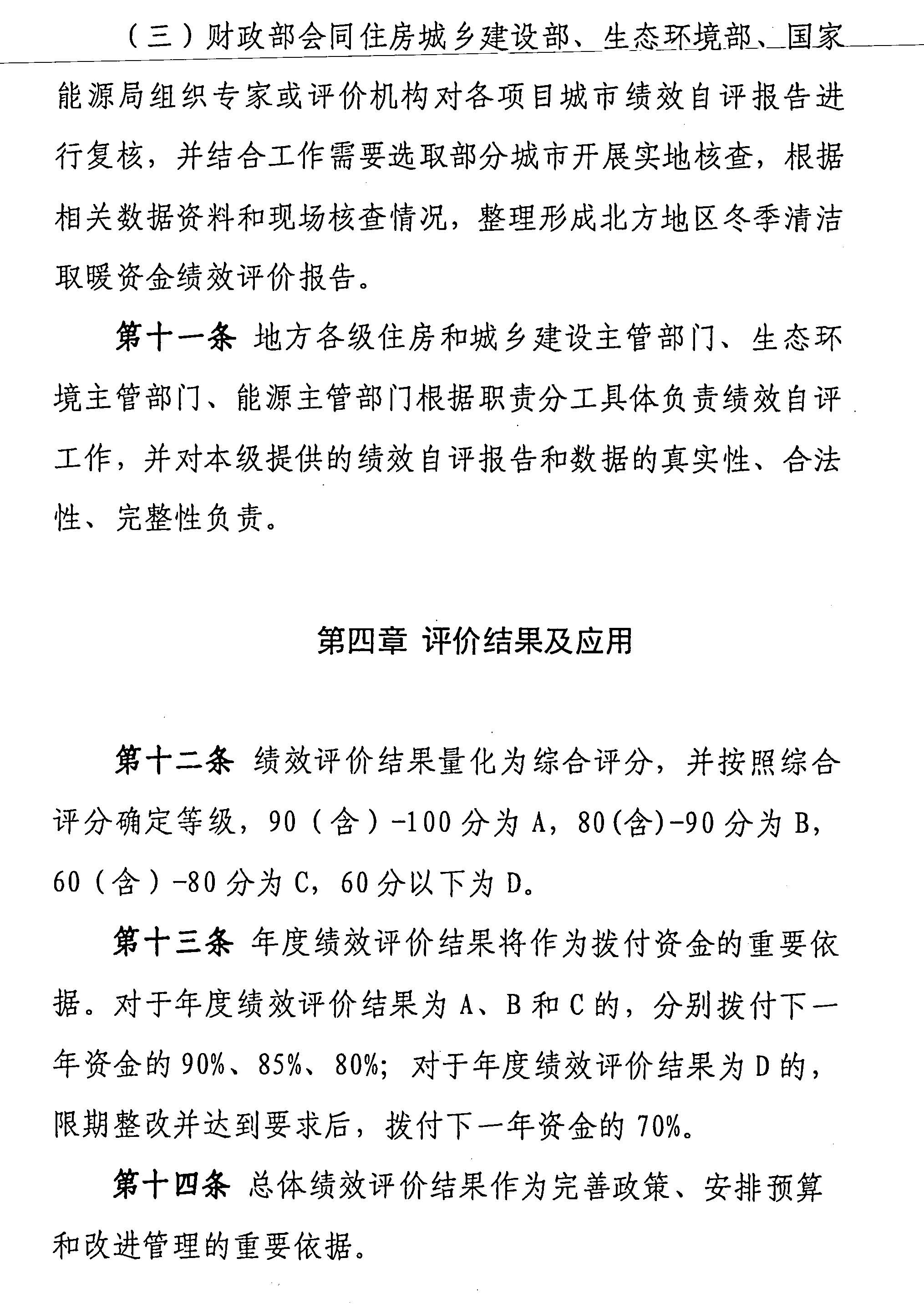 爐具網(wǎng)訊:近日,財(cái)政部、住房城鄉(xiāng)建設(shè)部、生態(tài)環(huán)境部、國(guó)家能源局等4部門關(guān)于印發(fā)《北方地區(qū)冬季清潔取暖資金績(jī)效評(píng)價(jià)辦法》的通知指出,各級(jí)財(cái)政部門會(huì)同住房和城鄉(xiāng)建設(shè)主管部門、生態(tài)環(huán)境主管部門、能源主管部門應(yīng)當(dāng)按照政府信息公開的有關(guān)規(guī)定,通過政府官方網(wǎng)站、通報(bào)、報(bào)刊等方式及時(shí)將績(jī)效評(píng)價(jià)結(jié)果公開,接受社會(huì)監(jiān)督;并督促資金使用單位對(duì)績(jī)效評(píng)價(jià)發(fā)現(xiàn)的問題進(jìn)行認(rèn)真整改,確保北方地區(qū)冬季清潔取暖資金績(jī)效目標(biāo)保質(zhì)保量實(shí)現(xiàn)。保證北方地區(qū)冬季清潔取暖項(xiàng)目實(shí)施效果,提高財(cái)政資金使用的規(guī)范性、安全性和有效性,確保清潔取暖各項(xiàng)工作順利實(shí)施。