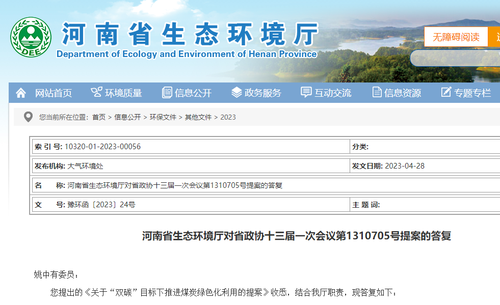 河南省生態環境廳對省政協十三屆一次會議第1310705號提案的答復