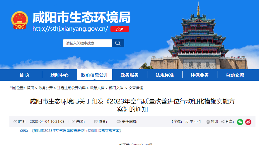 咸陽市生態環境局關于印發《2023年空氣質量改善進位行動細化措施實施方案》的通知