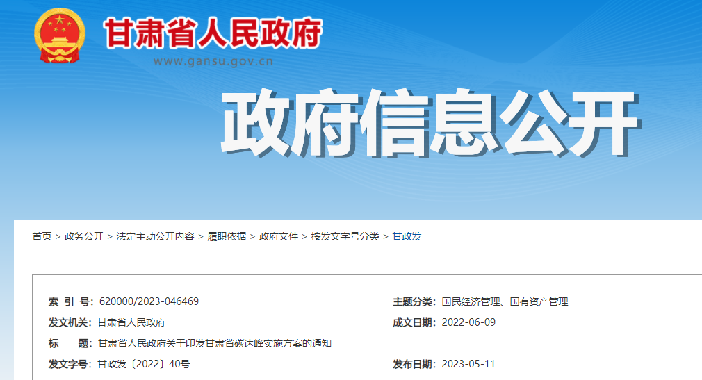 甘肅省人民政府關于印發甘肅省碳達峰實施方案的通知