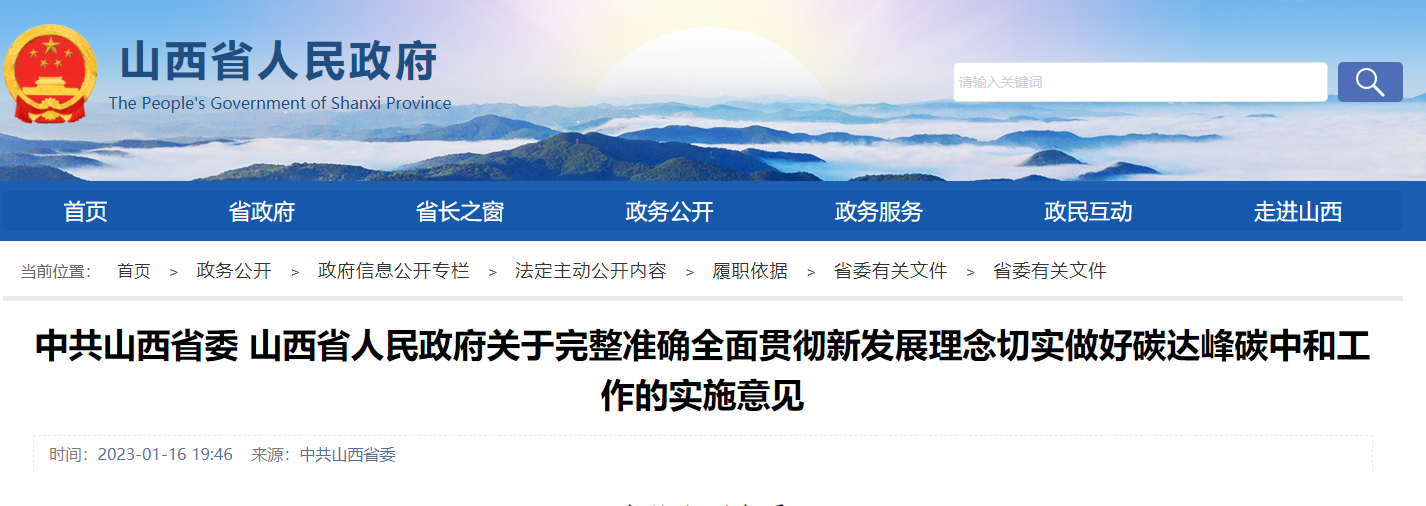 為貫徹落實《中共中央、國務院關于完整準確全面貫徹新發展理念做好碳達峰碳中和工作的意見》,穩妥有序、有力有效做好山西碳達峰、碳中和工作,制定本實施意見。