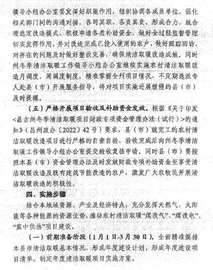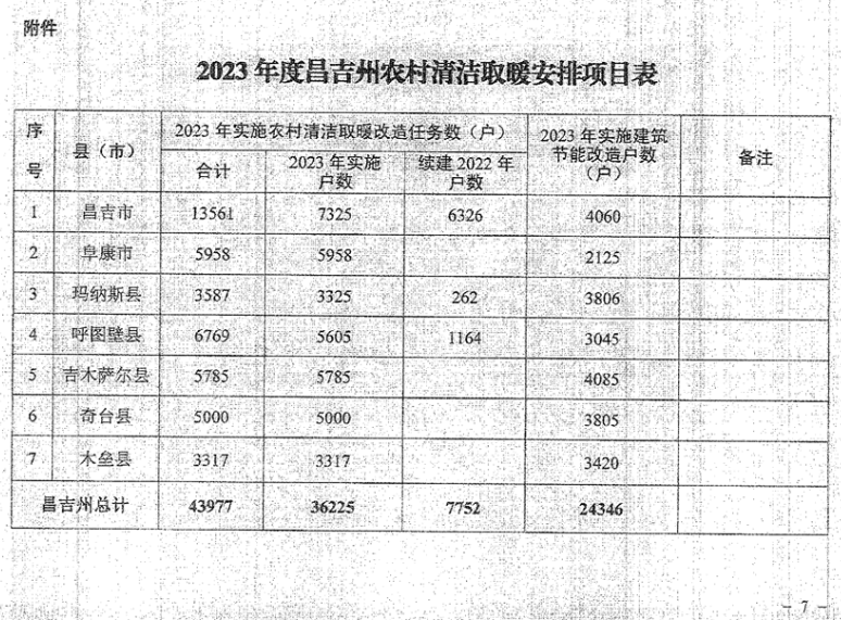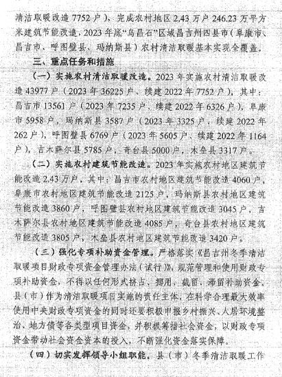 近日,新疆維吾爾自治區《昌吉州2023年農村清潔取暖改造工作實施方案》發布顯示,2023年昌吉州完成農村清潔取暖改造43977戶(2023年實施農村地區清潔取暖改造36225戶、續建2022年農村地區清潔取暖改造7752戶),其中:昌吉市13561戶(2023年7235戶、續建2022年6325戶),阜康市5958戶,瑪納斯縣3587戶(2023年3325戶,續建2022年262戶),呼圖壁縣6769戶(2023年5605戶,續建2022年1164戶),吉木薩爾縣5785戶,奇臺縣5000戶,木壘縣3317戶。完成農村地區2.43萬戶246.23萬平方米建筑節能改造,2023年底“烏昌石”區域昌吉州四縣市(阜康市、昌吉市、呼圖壁縣、瑪納斯縣)農村清潔取暖基本實現全覆蓋。