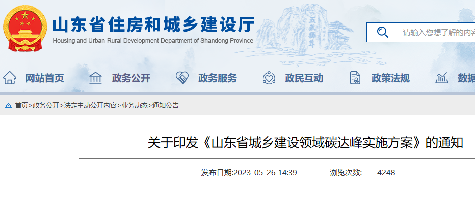 關于印發《山東省城鄉建設領域碳達峰實施方案》的通知