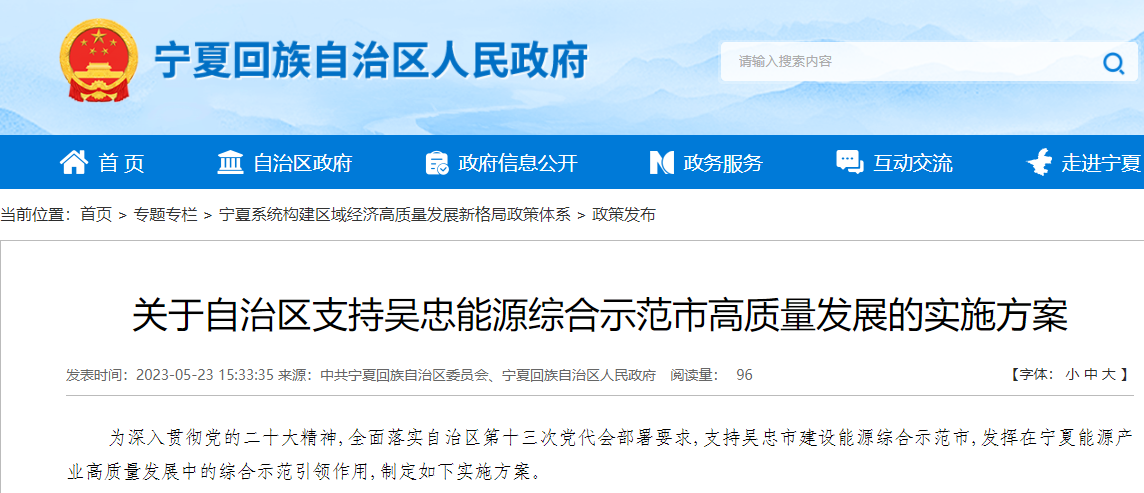 為深入貫徹黨的二十大精神,全面落實(shí)自治區(qū)第十三次黨代會(huì)部署要求,支持吳忠市建設(shè)能源綜合示范市,發(fā)揮在寧夏能源產(chǎn)業(yè)高質(zhì)量發(fā)展中的綜合示范引領(lǐng)作用,制定如下實(shí)施方案。