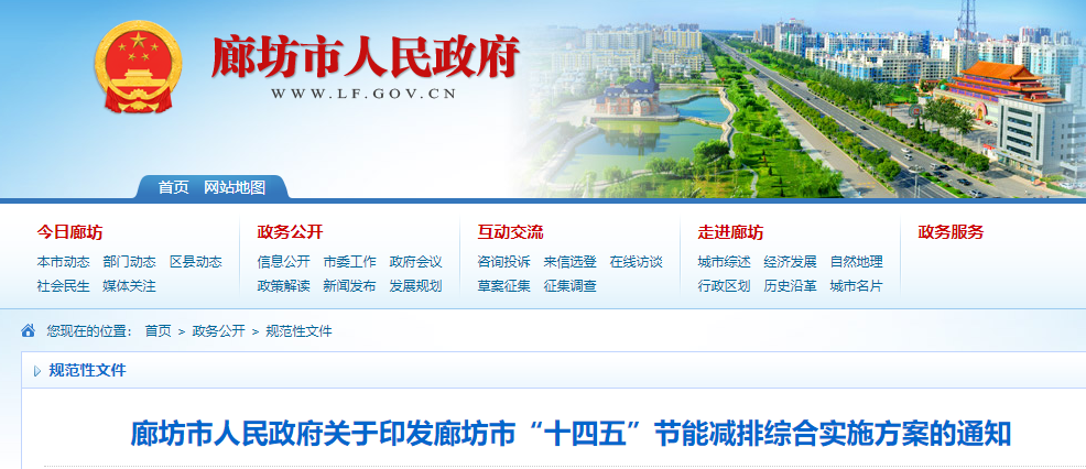 廊坊市人民政府關于印發(fā)廊坊市“十四五”節(jié)能減排綜合實施方案的通知