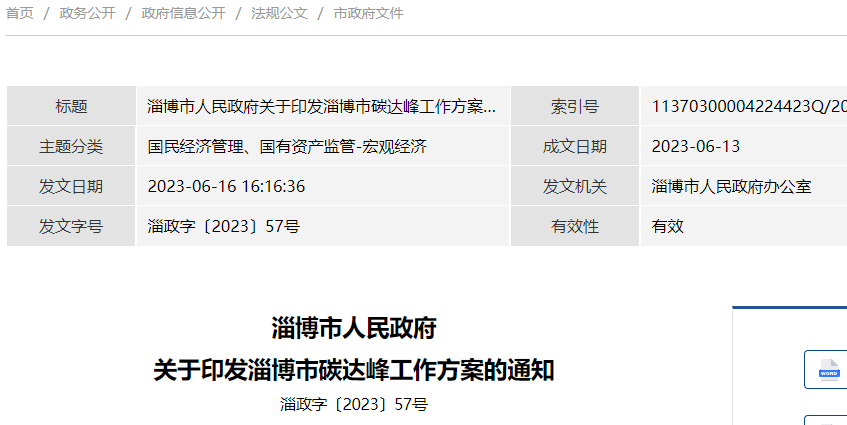 淄博市人民政府關于印發淄博市碳達峰工作方案的通知