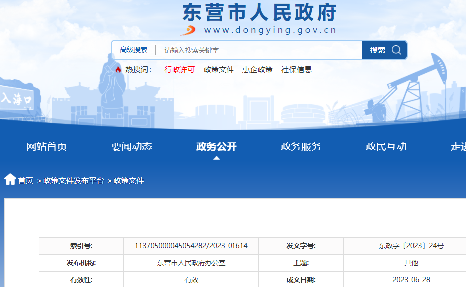 東營市人民政府關于印發東營市碳達峰工作方案的通知