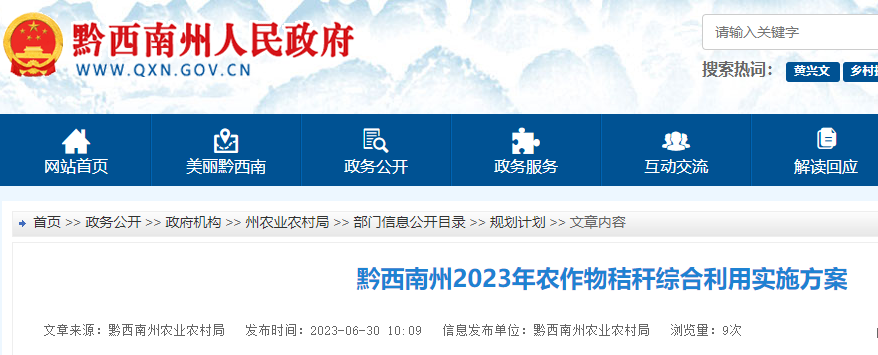 黔西南州2023年農作物秸稈綜合利用實施方案