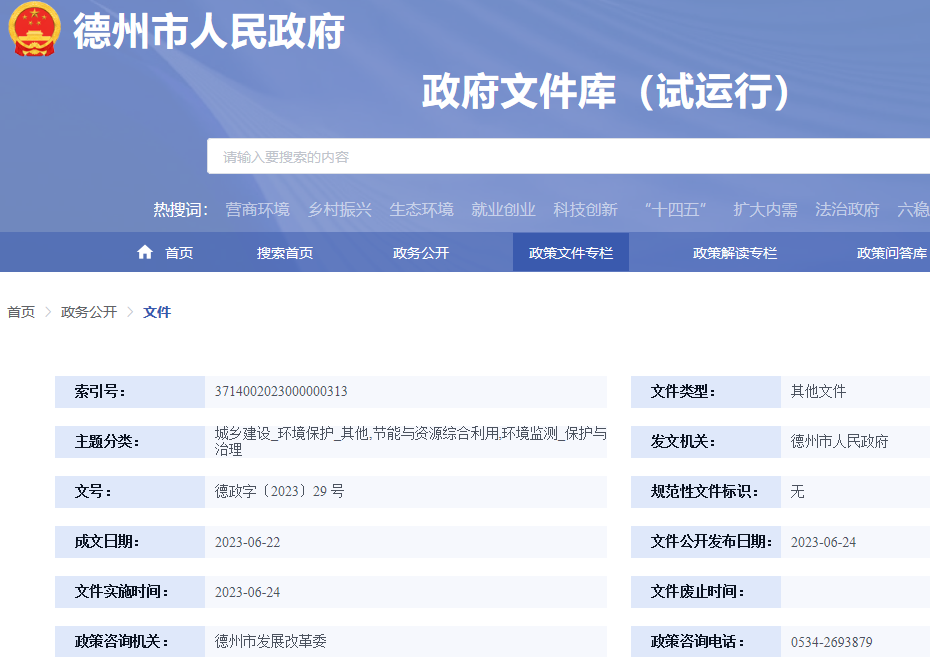德州市人民政府關(guān)于印發(fā)德州市碳達(dá)峰工作方案的通知