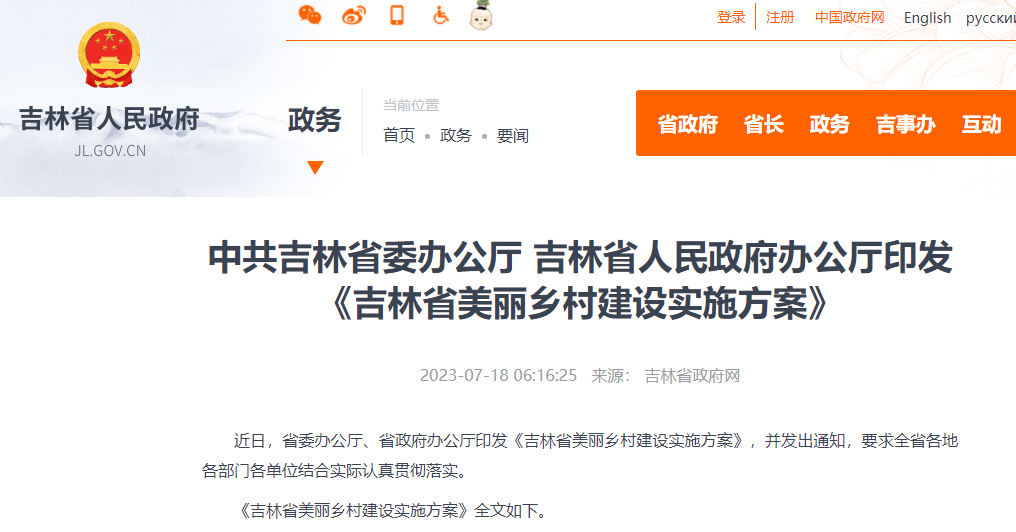 中共吉林省委辦公廳 吉林省人民政府辦公廳印發《吉林省美麗鄉村建設實施方案》