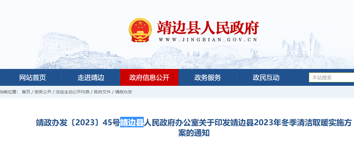 靖邊縣人民政府辦公室關于印發靖邊縣2023年冬季清潔取暖實施方案的通知