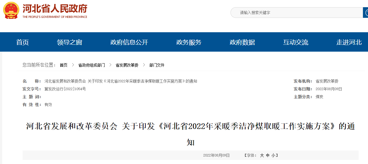 河北省2022年采暖季潔凈煤取暖工作實施方案