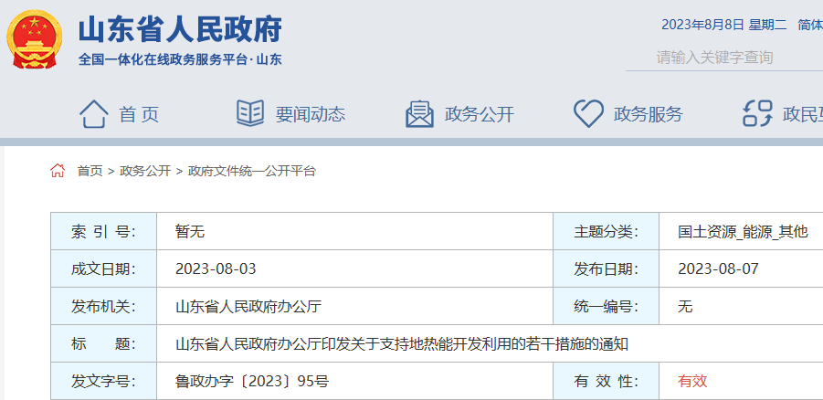 山東省人民政府辦公廳印發關于支持地熱能開發利用的若干措施的通知