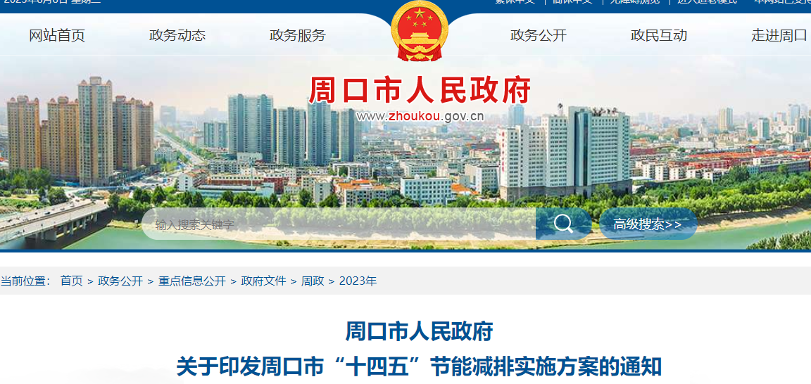 周口市人民政府關于印發周口市“十四五”節能減排實施方案的通知