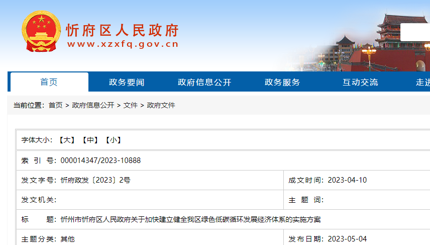 忻州市忻府區(qū)人民政府關(guān)于加快建立健全我區(qū)綠色低碳循環(huán)發(fā)展經(jīng)濟(jì)體系的實(shí)施方案