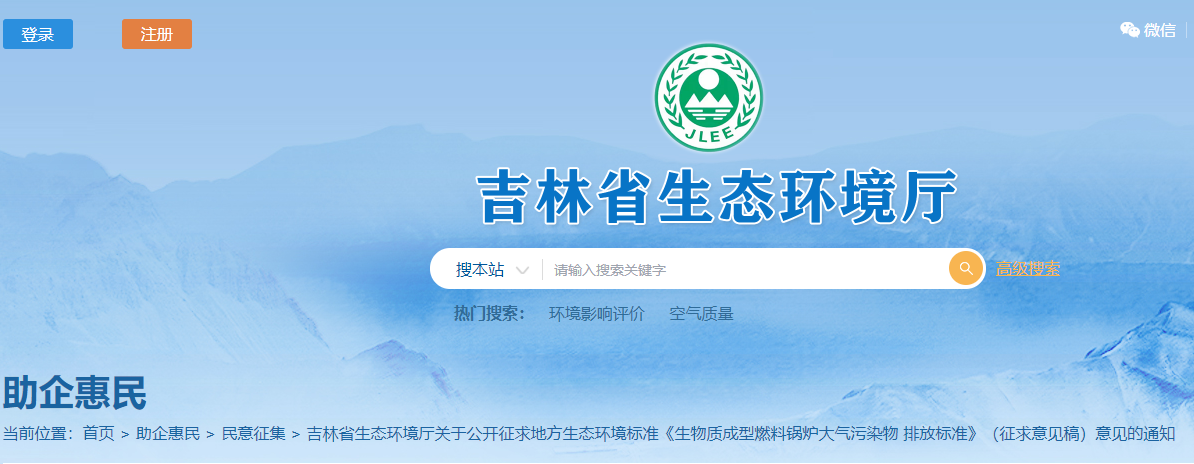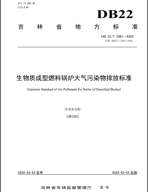 吉林省生態環境廳關于公開征求地方生態環境標準《生物質成型燃料鍋爐大氣污染物排放標準》(征求意見稿)意見的通知