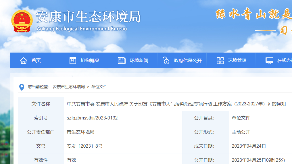中共安康市委、安康市人民政府關于印發《安康市大氣污染治理專項行動工作方案(2023-2027年)》的通知