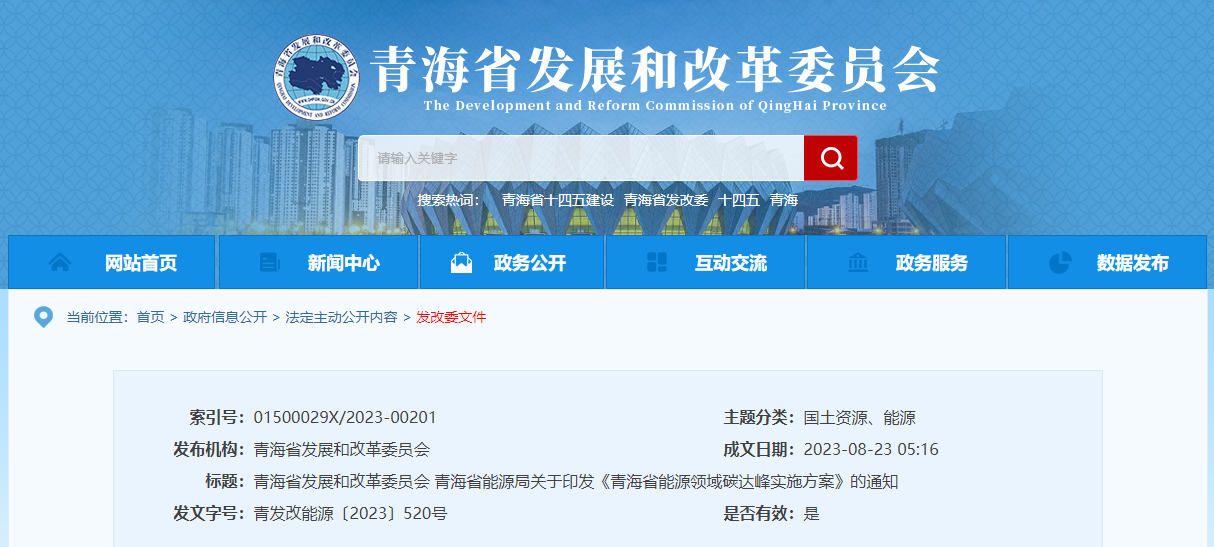 青海省發展和改革委員會、青海省能源局關于印發《青海省能源領域碳達峰實施方案》的通知