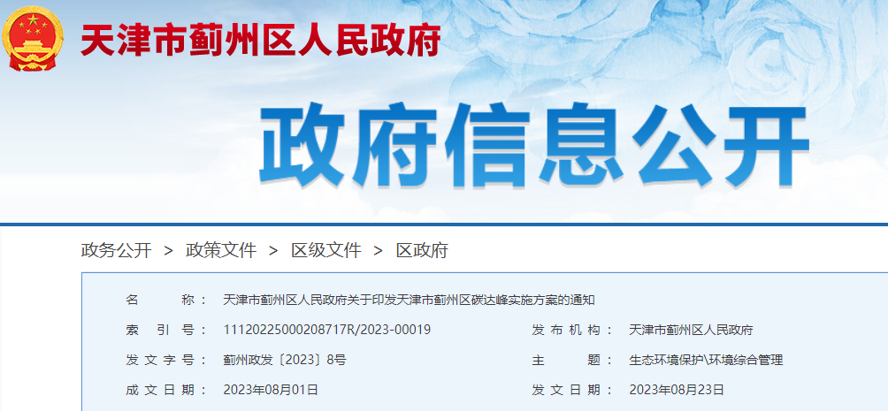 天津市薊州區人民政府關于印發天津市薊州區碳達峰實施方案的通知
