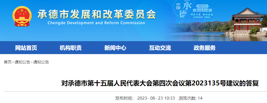 原標題:對承德市第十五屆人民代表大會第四次會議第2023135號建議的答復