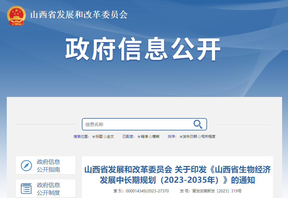 山西省發展和改革委員會關于印發《山西省生物經濟發展中長期規劃(2023-2035年)》的通知