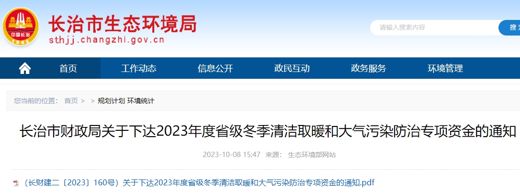 長治市財政局關于下達2023年度省級冬季清潔取暖和大氣污染防治專項資金的通知