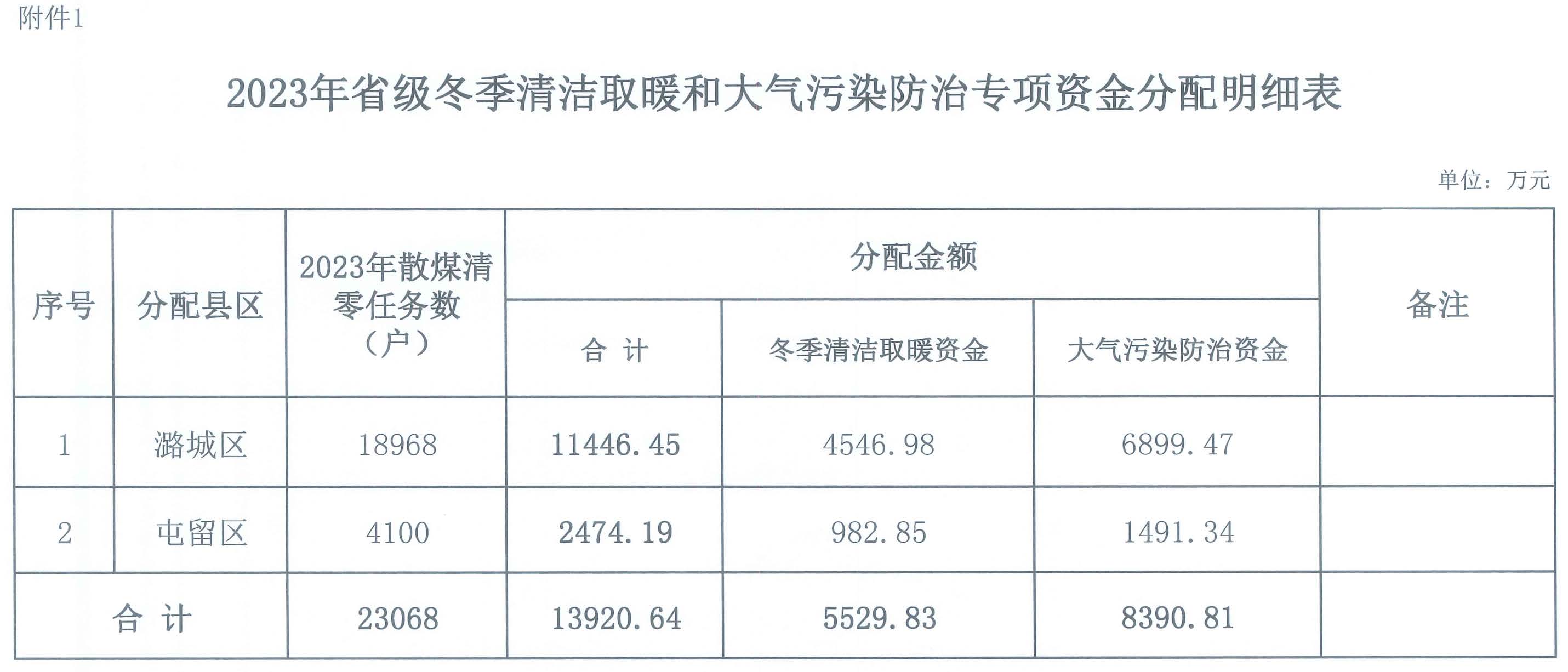 附件: 1.2023 年省級冬季清潔取暖和大氣污染防治專項資金分配明細表