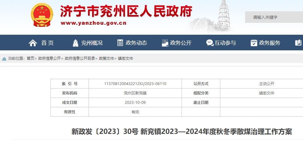 原標題:新政發〔2023〕30號 新兗鎮2023—2024年度秋冬季散煤治理工作方案