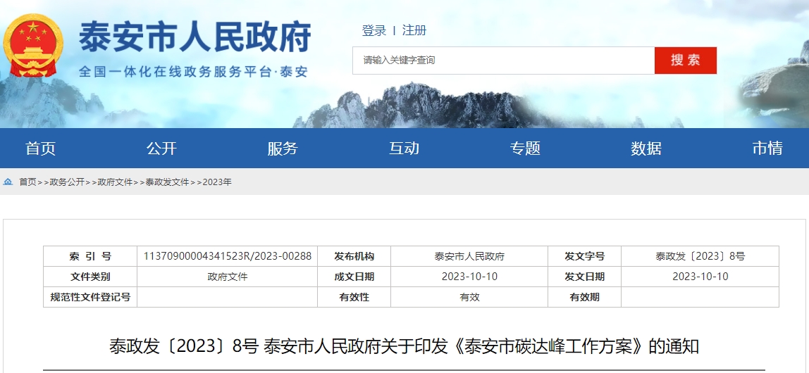 泰安市人民政府關于印發《泰安市碳達峰工作方案》的通知