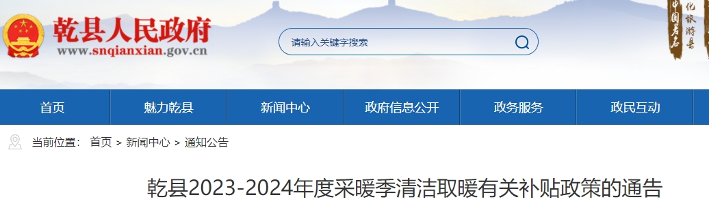 乾縣2023-2024年度采暖季清潔取暖有關補貼政策的通告