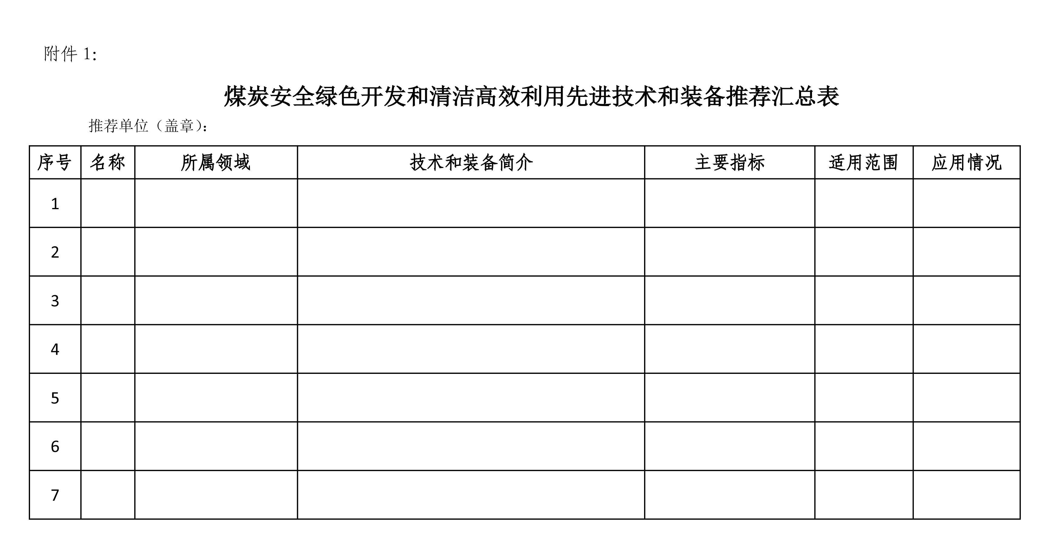 附件:1、煤炭安全綠色開(kāi)發(fā)和清潔高效利用先進(jìn)技術(shù)和裝備推薦匯總表(推薦單位填寫(xiě))