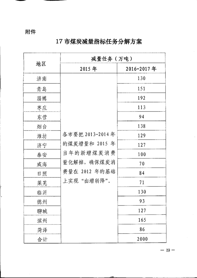 根據國家關于將煤炭減量目標分解落實到各市(區)縣和重點耗煤行業、企業的要求,由省發展改革委結合我省17市近年來能源消費、煤炭消費和產業結構實際情況,將國家下達我省的2000萬噸煤炭減量指標任務分解落實到全省17個市。17市煤炭減量指標任務分解情況見附件。