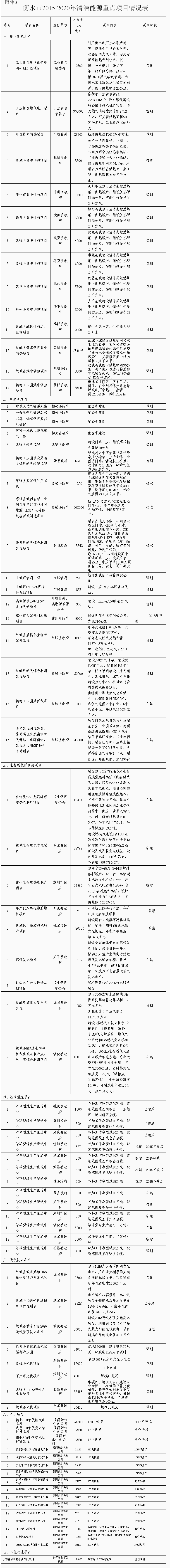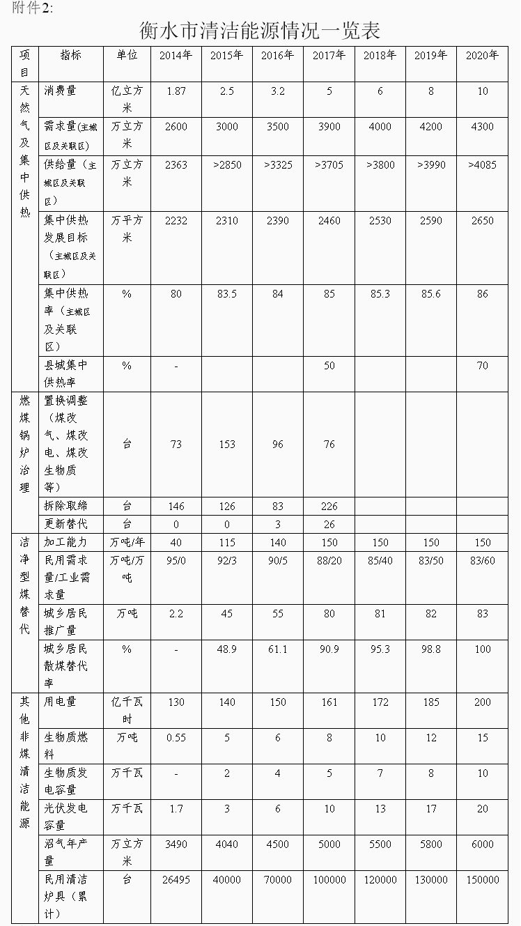 2、衡水市清潔能源情況一覽表