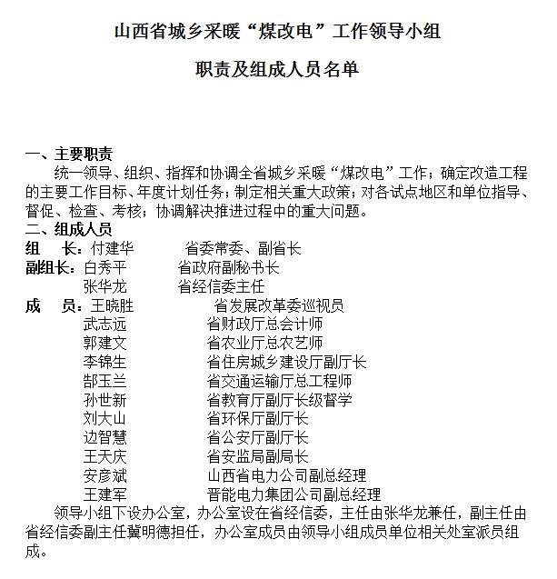 附件:山西省城鄉(xiāng)采暖“煤改電”工作領(lǐng)導(dǎo)小組職責(zé)及組成人員名單